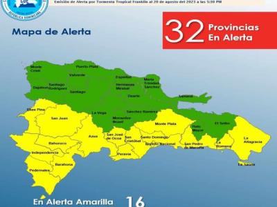 Tan pronto el Centro de Huracanes de los Estados Unidos elevó de categoría a la tormenta tropical Franklin, el Centro de Operaciones de Emergencia (COE) colocó 16 provincias en alerta amarilla y 16…
